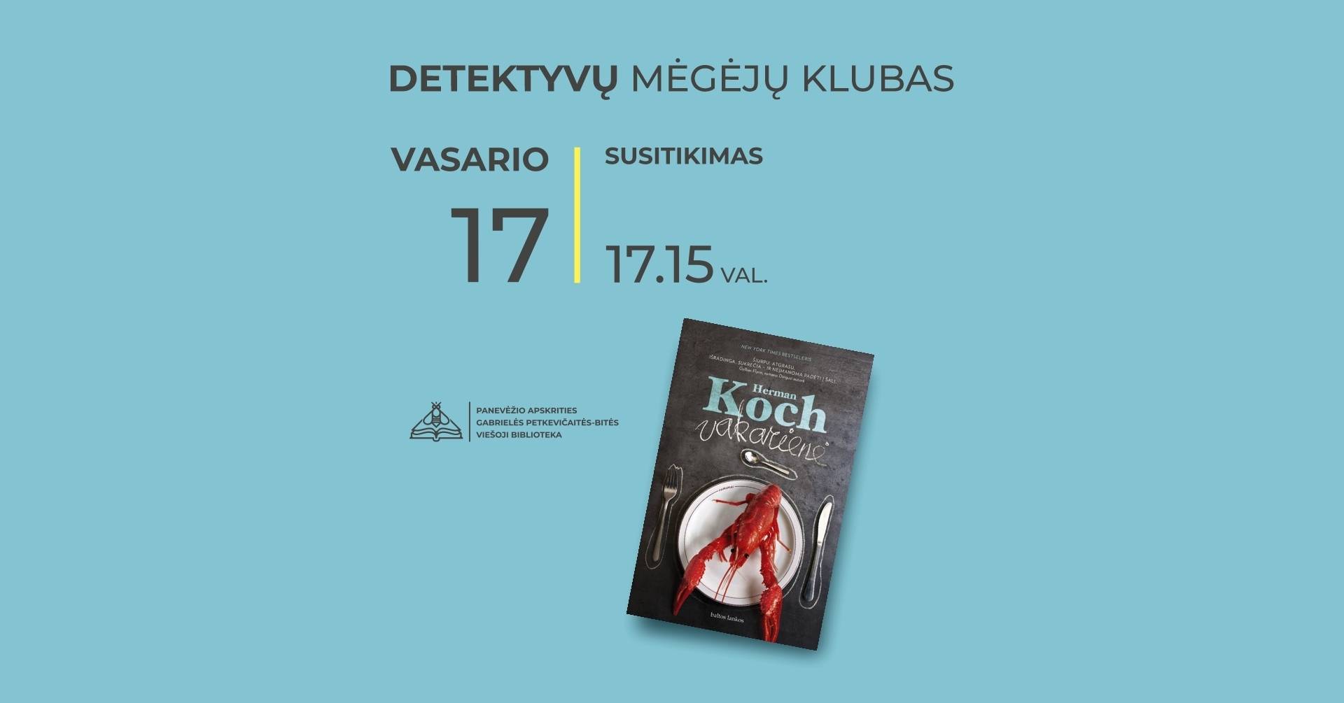 Vasario 17 d. 17.15 val. Bendruomenės erdvėje – detektyvų mėgėjų klubas. Skaitome Herman Koch „Vakarienė".