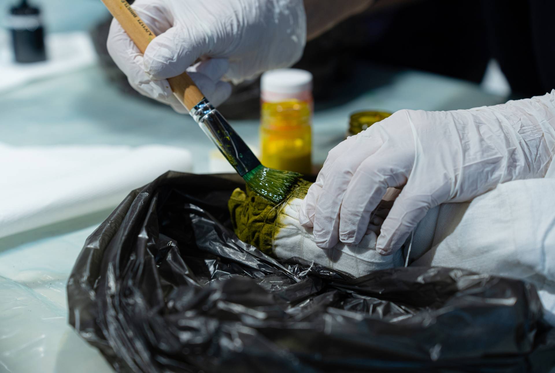 Šioje technikoje nenaudojamas vaškas ar karštis – tik dažai, vanduo, audinys ir Jūsų nuotaika.