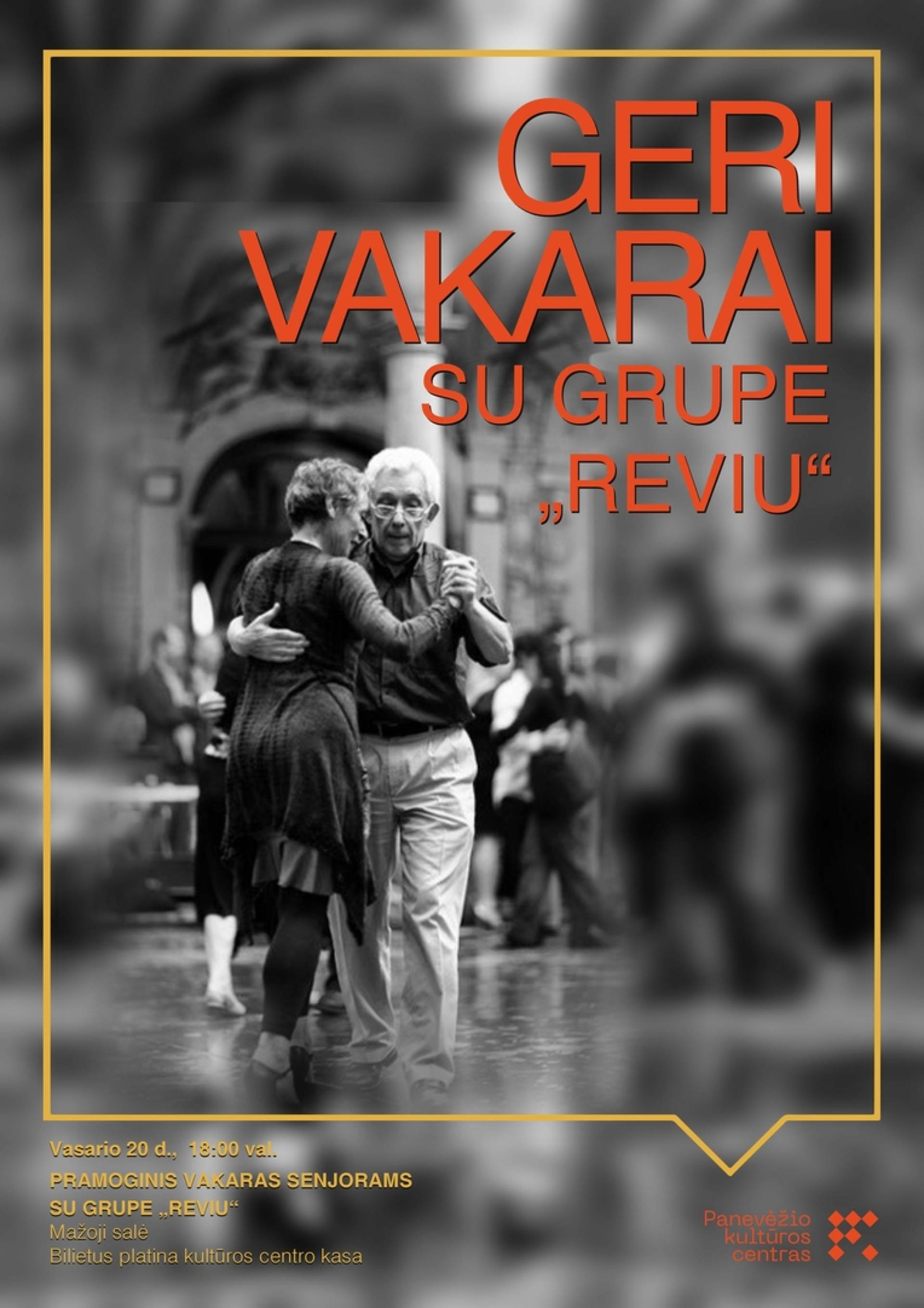 Panevėžio kultūros centre vyks pramoginis vakaras senjorams „Geri vakarai“, kuriame šokėjus ir muzikos mylėtojus džiugins grupė „Reviu“.