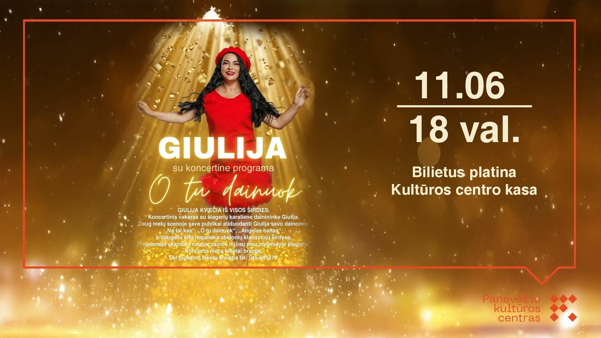 Lapkričio 6 d., 18 val. Panevėžio kultūros centre – šlagerių karalienė Giulija kviečia į jaukų ir nuotaikingą vakarą, kupiną muzikos, šypsenų ir šiltų emocijų.