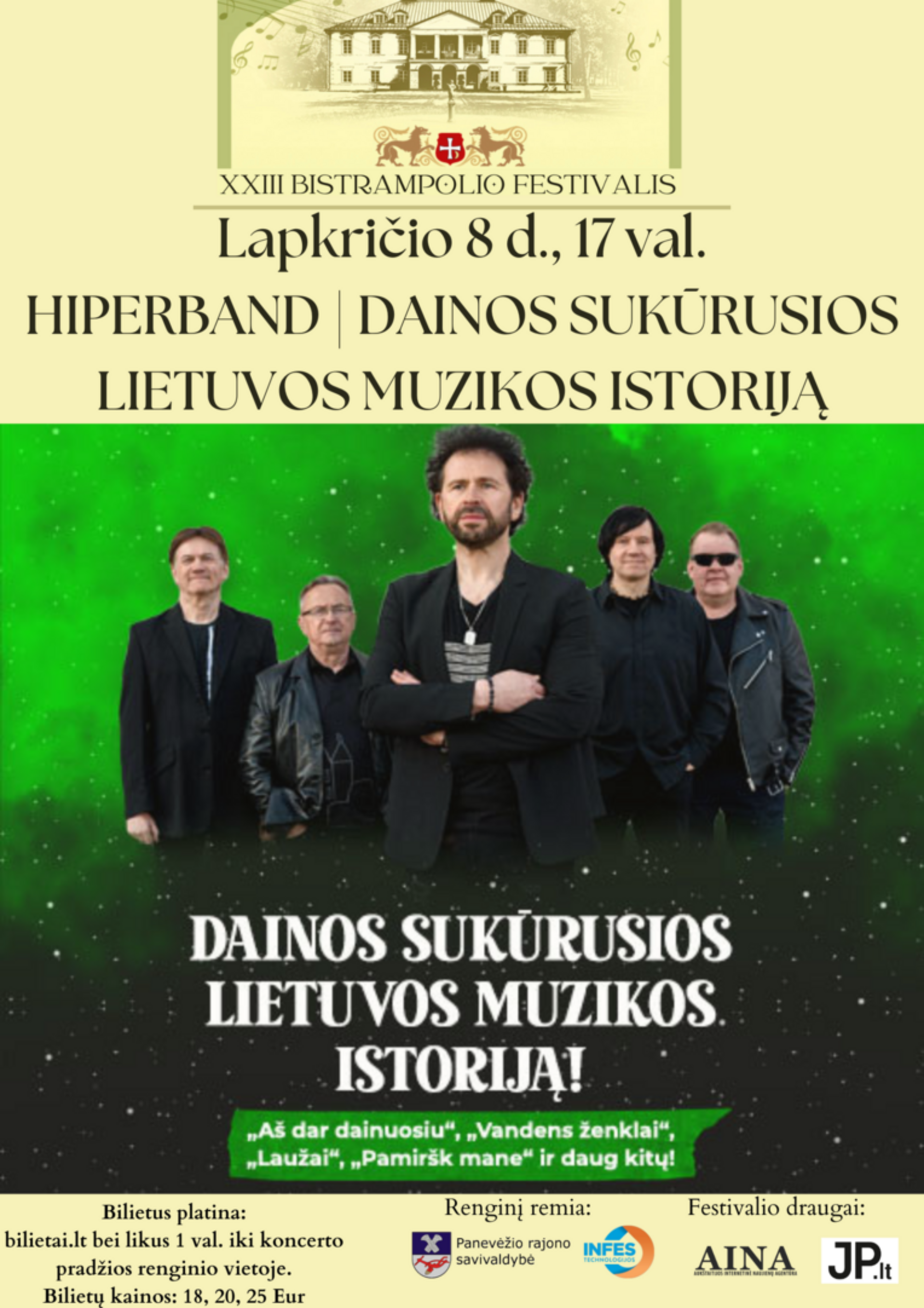 Tad, jei pasiilgote išsvajotų ir pamiltų į Lietuvos muzikos istoriją įrašytų dainų, kviečiame į ypatingą grupės „Hiperband“ koncertą Bistrampolio dvare lapkričio 8 dieną!