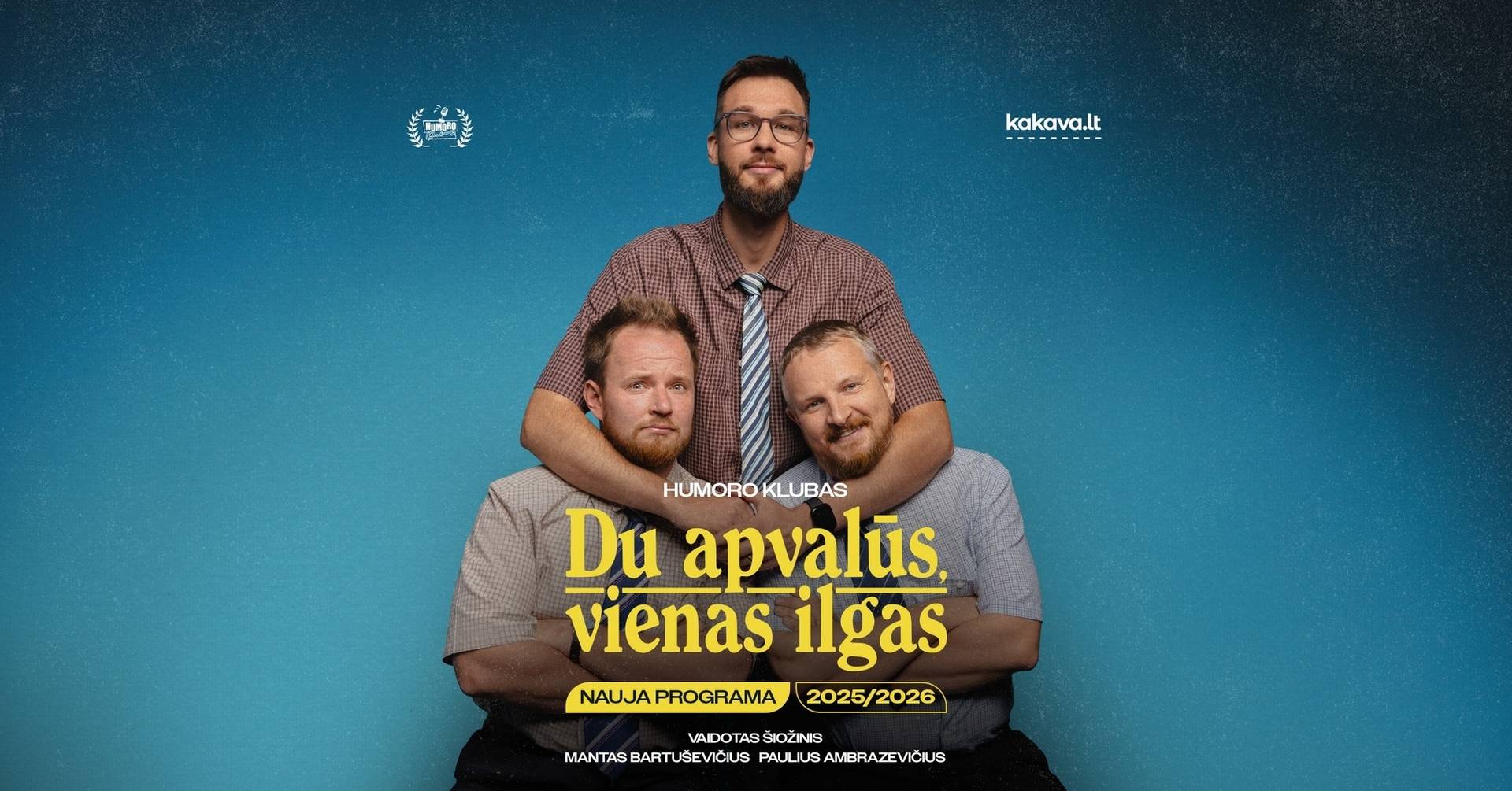 „Humoro klubas“ grįžta į sceną! Metus praleidę dėl kažkokio mistiško „nuovargio“ – nes kaip gali pavargti, čia gi ne darbas – vyrai pasižiūrėjo į save, į savo banko sąskaitas ir nusprendė grįžti su nauju turu, pavadintu „Du apvalūs, vienas ilgas“. Kodėl toks pavadinimas? Pasižiūrėkite nuotraukas.