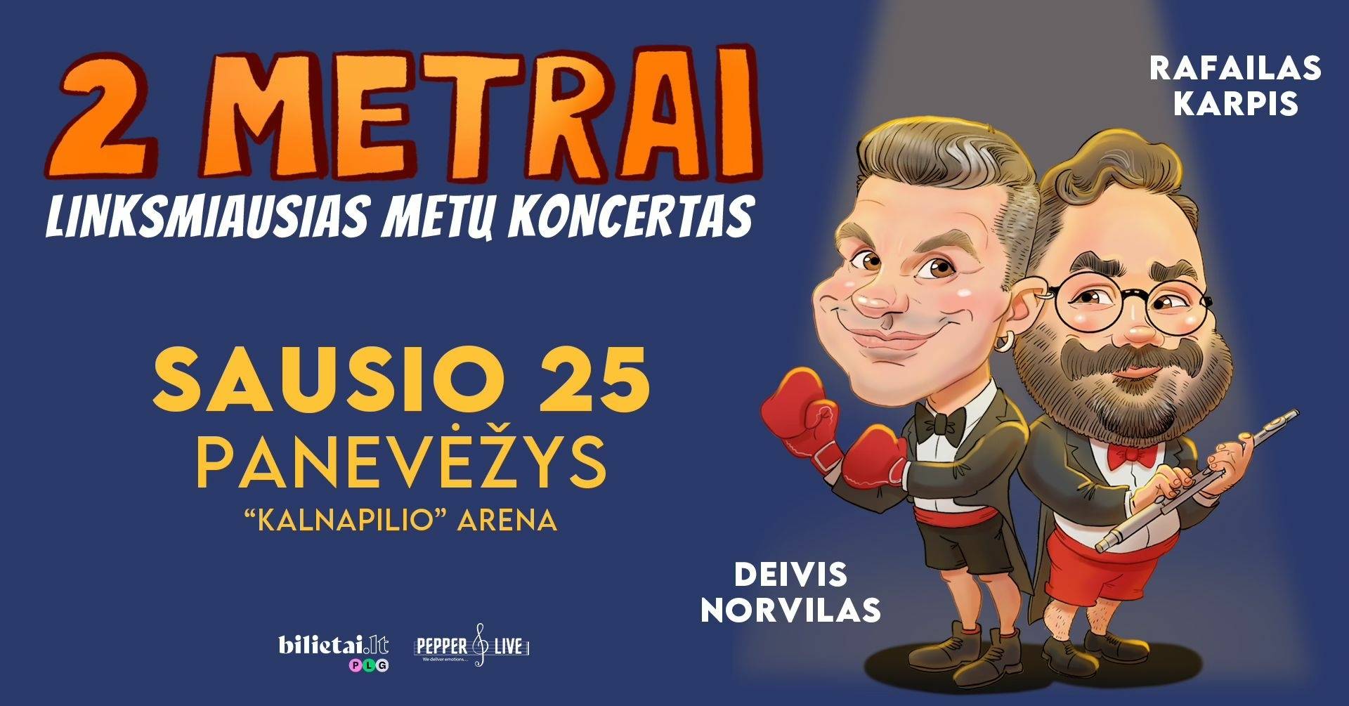 Lietuviškos muzikos scenoje prisistato naujas, nuotaikingas ir be abejonės didelę juoko dozę užtikrinsiantis duetas – jėgas sujungia dainininkas, tenoras Deividas Norvilas-Deivis ir operos solistas, tenoras Rafailas Karpis. Ateinantį rudenį, pristatydami naują projektą šmaikščiu pavadinimu „2 METRAI“, atlikėjai susitiks su klausytojais net keturiolikoje Lietuvos miestų ir užtikrins, kad tai bus linksmiausias matytas metų pasirodymas.