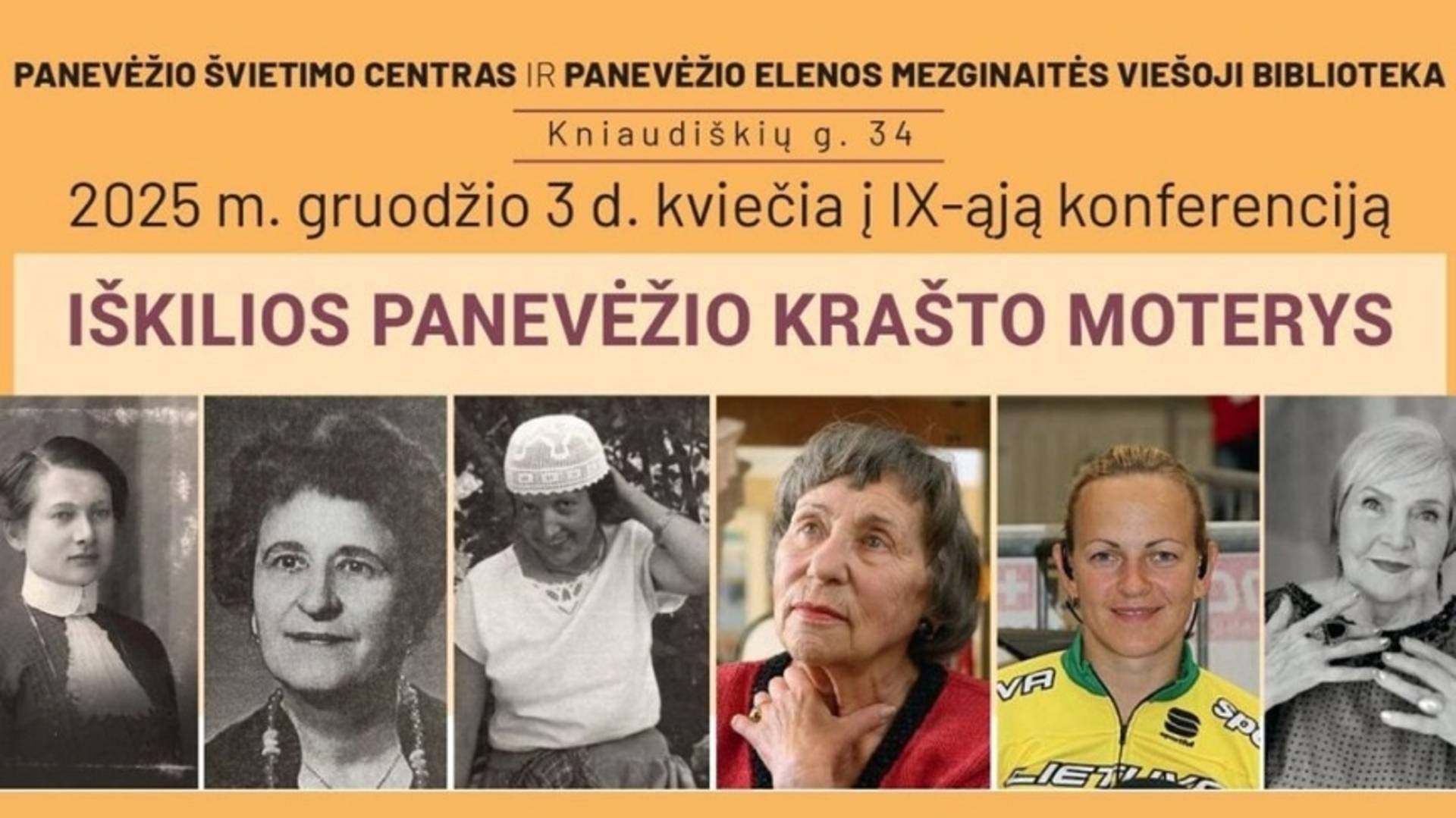 Panevėžio švietimo centras ir Panevėžio Elenos Mezginaitės viešoji biblioteka (Kniaudiškių g. 34) 2025 m. gruodžio 3 d. maloniai kviečia visus besidominčius Panevėžio krašto istorija, kultūra ir asmenybėmis į IX-ąją konferenciją „Iškilios Panevėžio krašto moterys“.