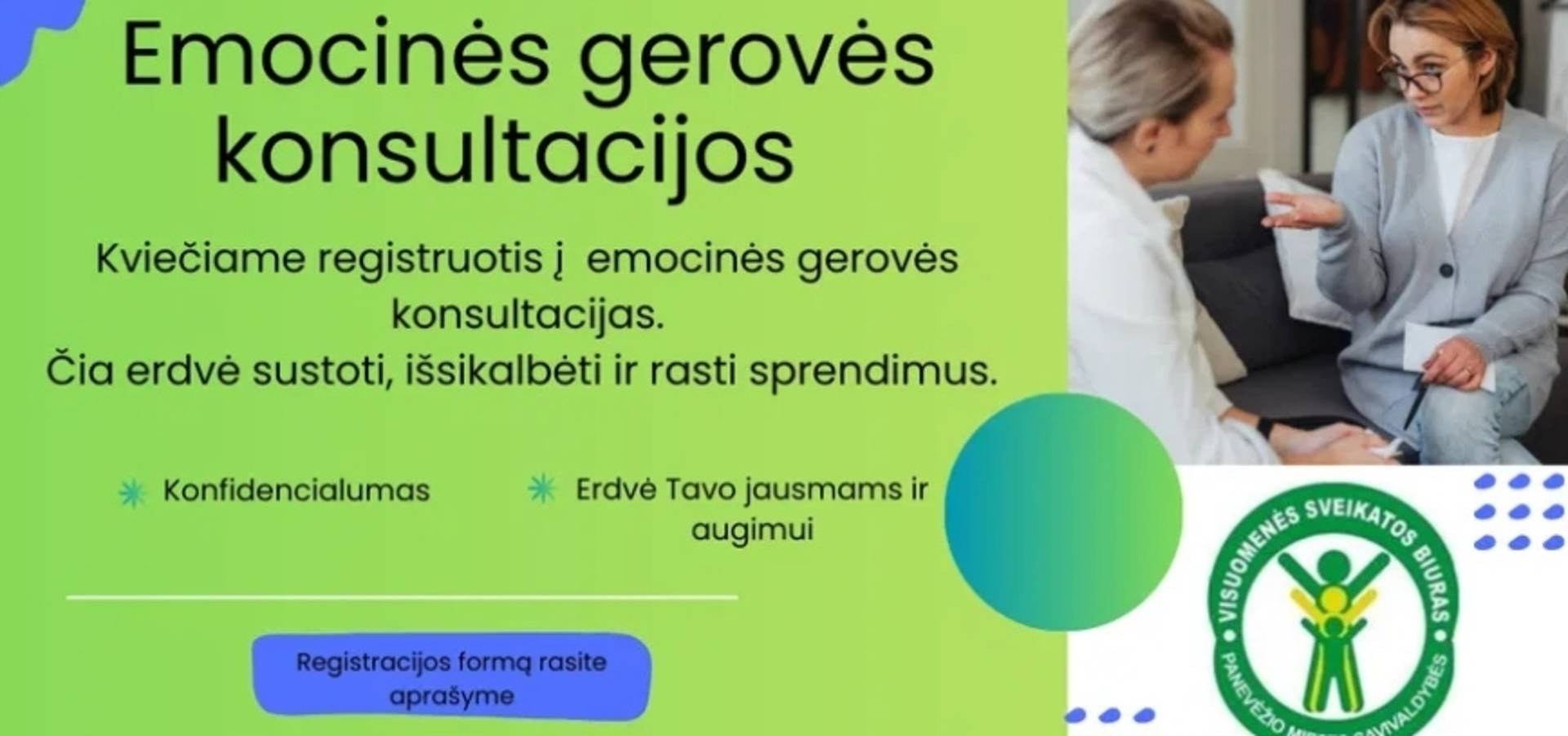Kviečiame suaugusius (nuo 18 m.) registruotis į emocinės gerovės konsultacijas – tai saugi erdvė sustoti, išgirsti save ir gauti palaikymą.