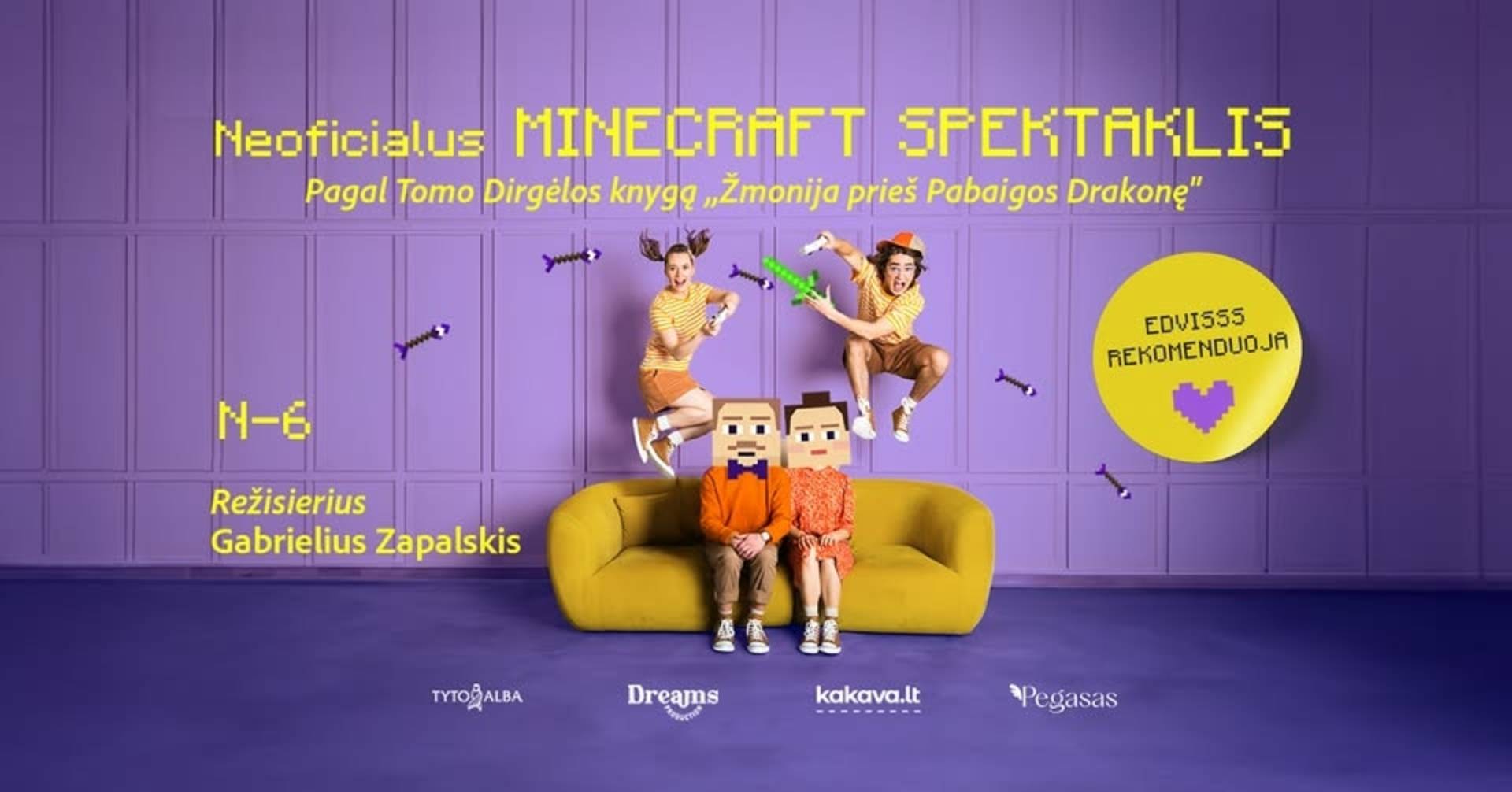 Šis kultinis internetinis žaidimas ir žymioji Tomo Dirgėlos knyga „Žmonija prieš Pabaigos Drakonę. Neoficialus Minecraft žaidėjų nuotykis“ pagaliau keliasi ir į teatro sceną! Spektaklis kviečia visus gerbėjus vienytis lemiamai kovai!