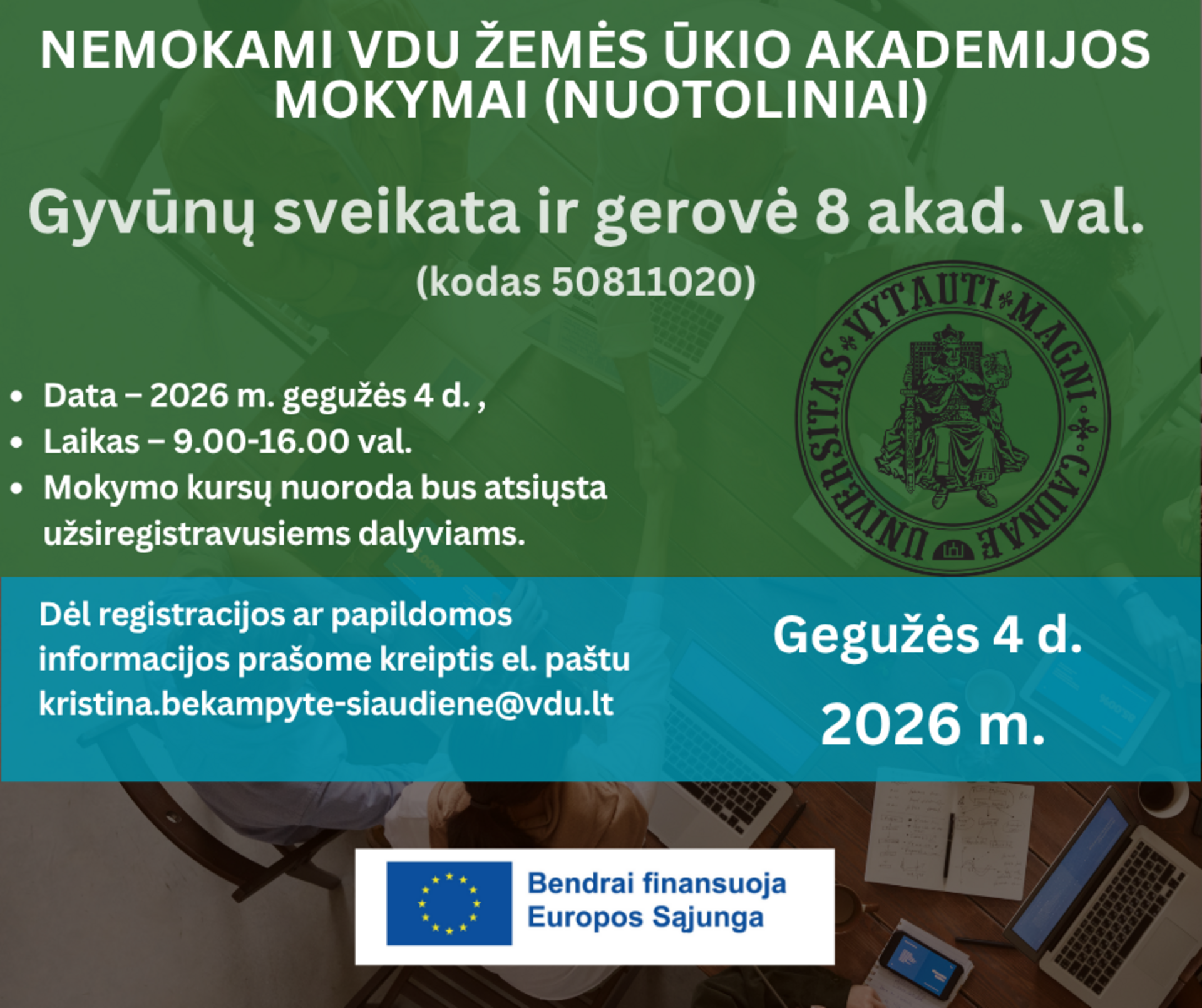 Registracija ir papildoma informacija: kristina.bekampyte-siaudiene@vdu.lt Tel.: +37069968932