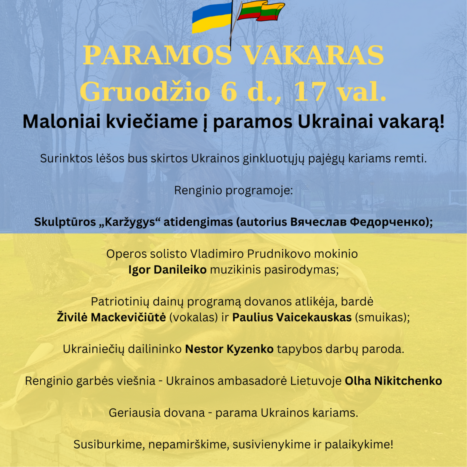 Gruodžio 6 d., 17 val. maloniai kviečiame Jus į paramos Ukrainai vakarą!