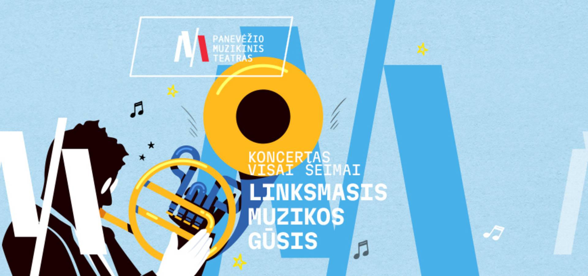 Linksmasis muzikos gūsis – tai pažintinis koncertas visai šeimai, kviečiantis pasinerti į žaismingą muzikos pasaulį kartu su Panevėžio muzikinio teatro pučiamųjų orkestru „Garsas“.