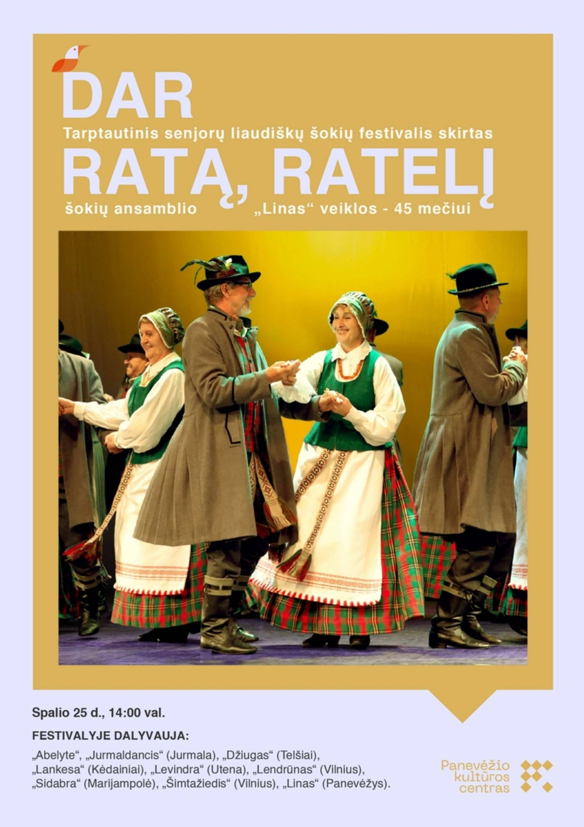Panevėžio kultūros centre vyks XXXIII tarptautinis liaudiškų šokių festivalis „Dar ratą, ratelį“, skirtas liaudiškų šokių ansamblio „Linas“ 45-osioms kūrybinės veiklos metinėms.