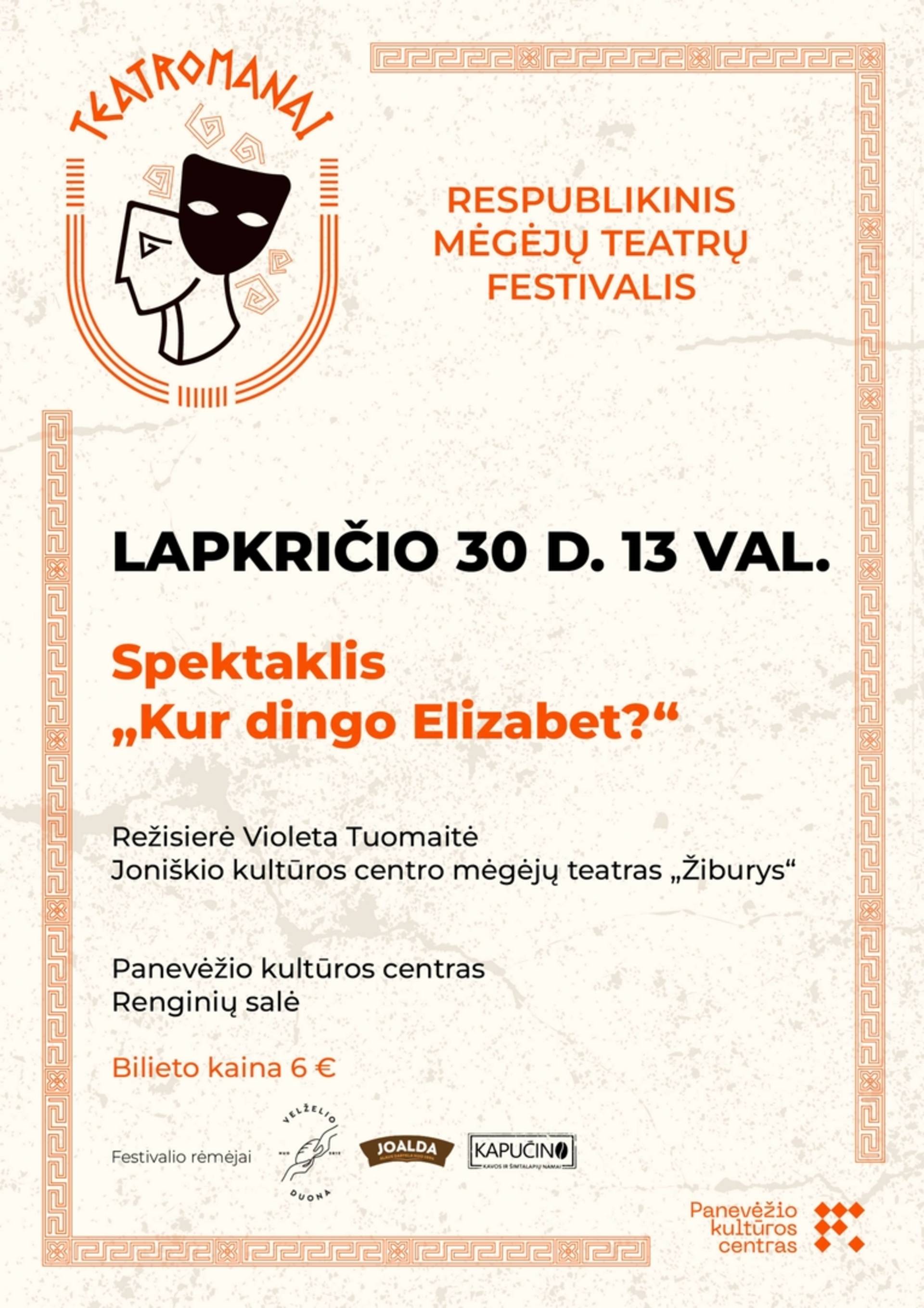 Respublikinį mėgėjų teatrų festivalį „Teatromanai“ uždaro Joniškio kultūros centro mėgėjų teatro „Žiburys“ nuotaikingas detektyvas „Kur dingo Elizabet?“,  režisierė – Violeta Tuomaitė