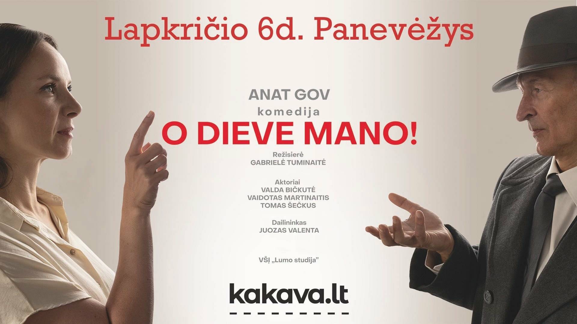 Anat Gov pjesė „Dieve mano“ iš pirmo žvilgsnio atrodo gana paprasta komedija, nuo pirmų puslapių stebinanti savo situacijos fantastiškumu – Dievas reikalauja vaikų(!) psichoterapeutės Elos pagalbos, kitaip atsitiks kažkas nepataisomo (kaip paaiškėja – „patobulintas tvanas“, „šakės visiems, net išrinktiesiems“). Ela pasauliui išgelbėti turi vienintelį seansą, kurio dalį „suvalgė“ Elos netikėjimas, kad klientas – Dievas.