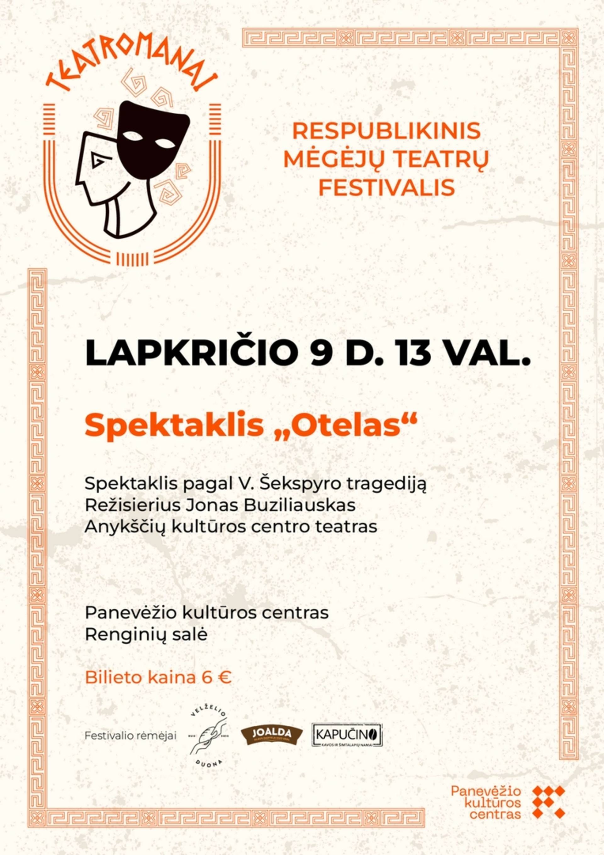Svečiuose Anykščių kultūros centro teatras su spektakliu „Otelas“ (pagal Viljamo Šekspyro tragediją)