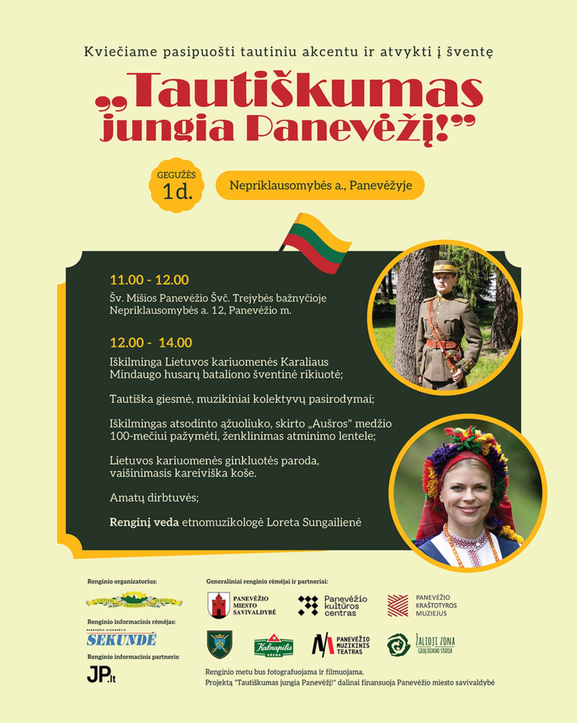 Kviečiame visus miestiečius pasipuošti tautiniu akcentu ir atvykti į tautiškumo šventę Nepriklausomybės aikštėje Panevėžyje.